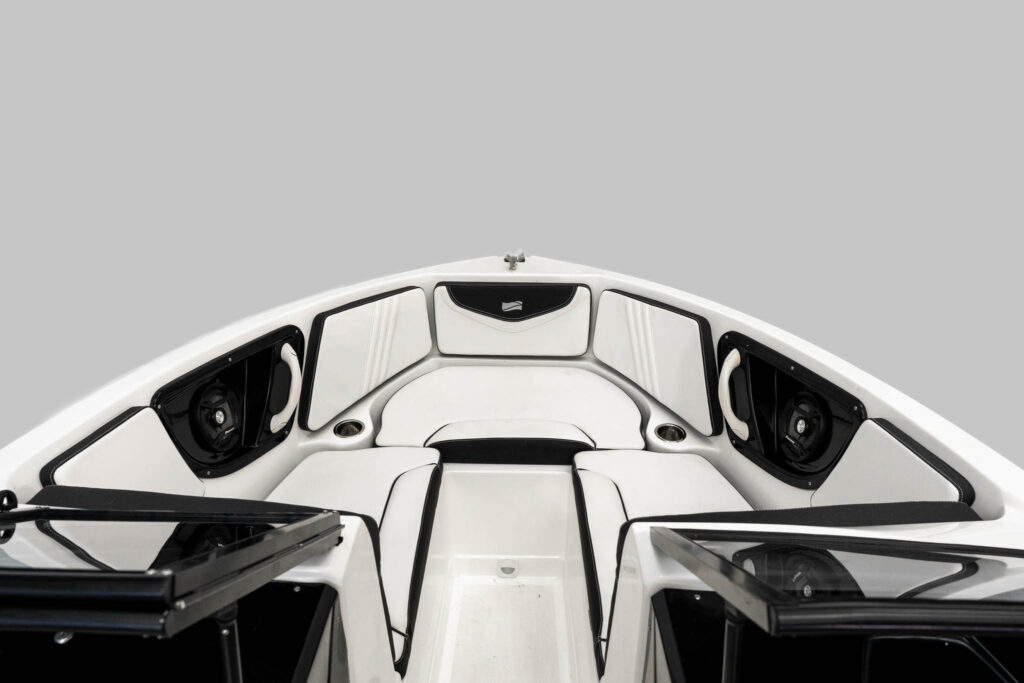 - Asientos tapizados en proa con almacenamiento moldeado debajo.
