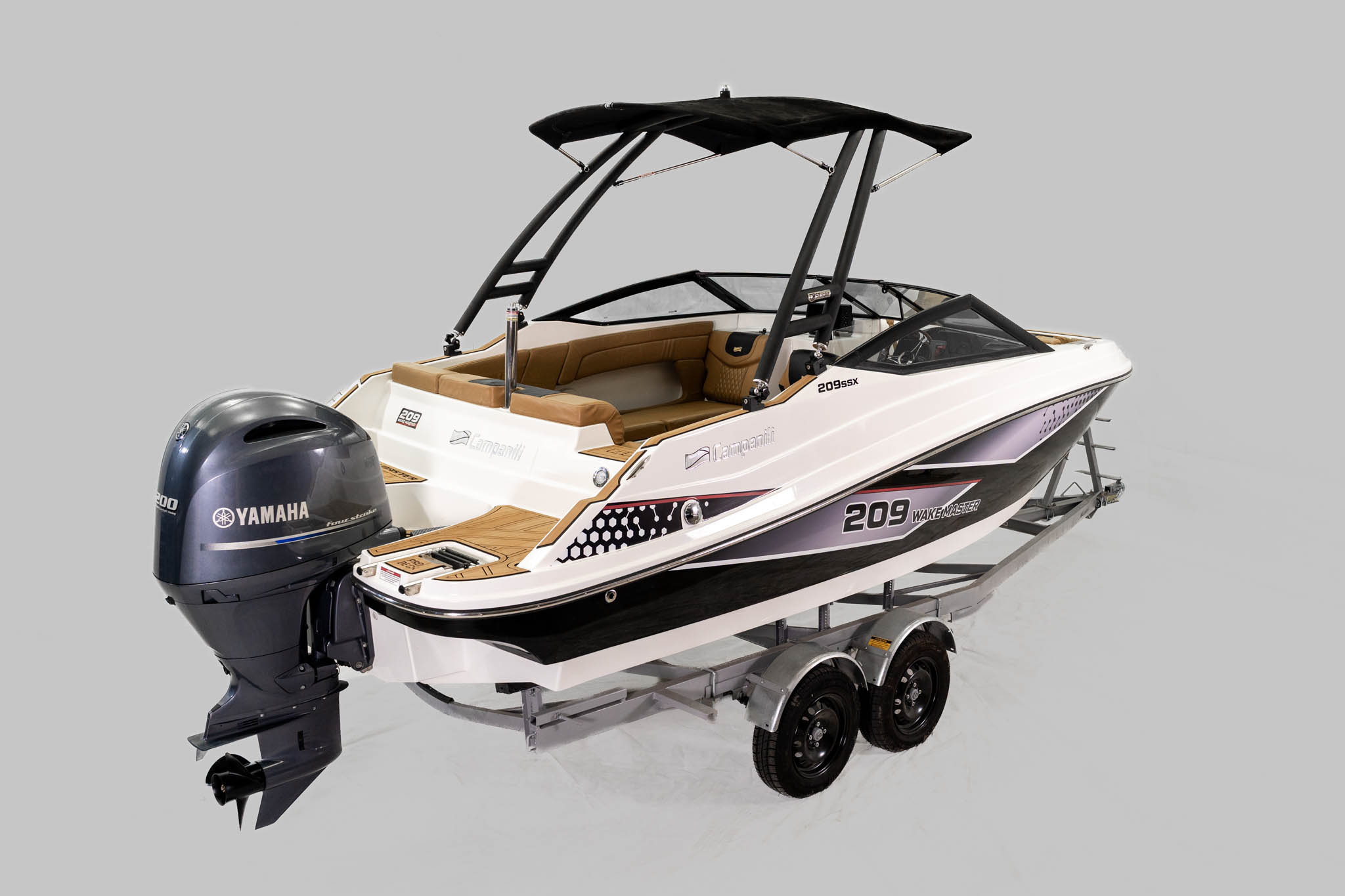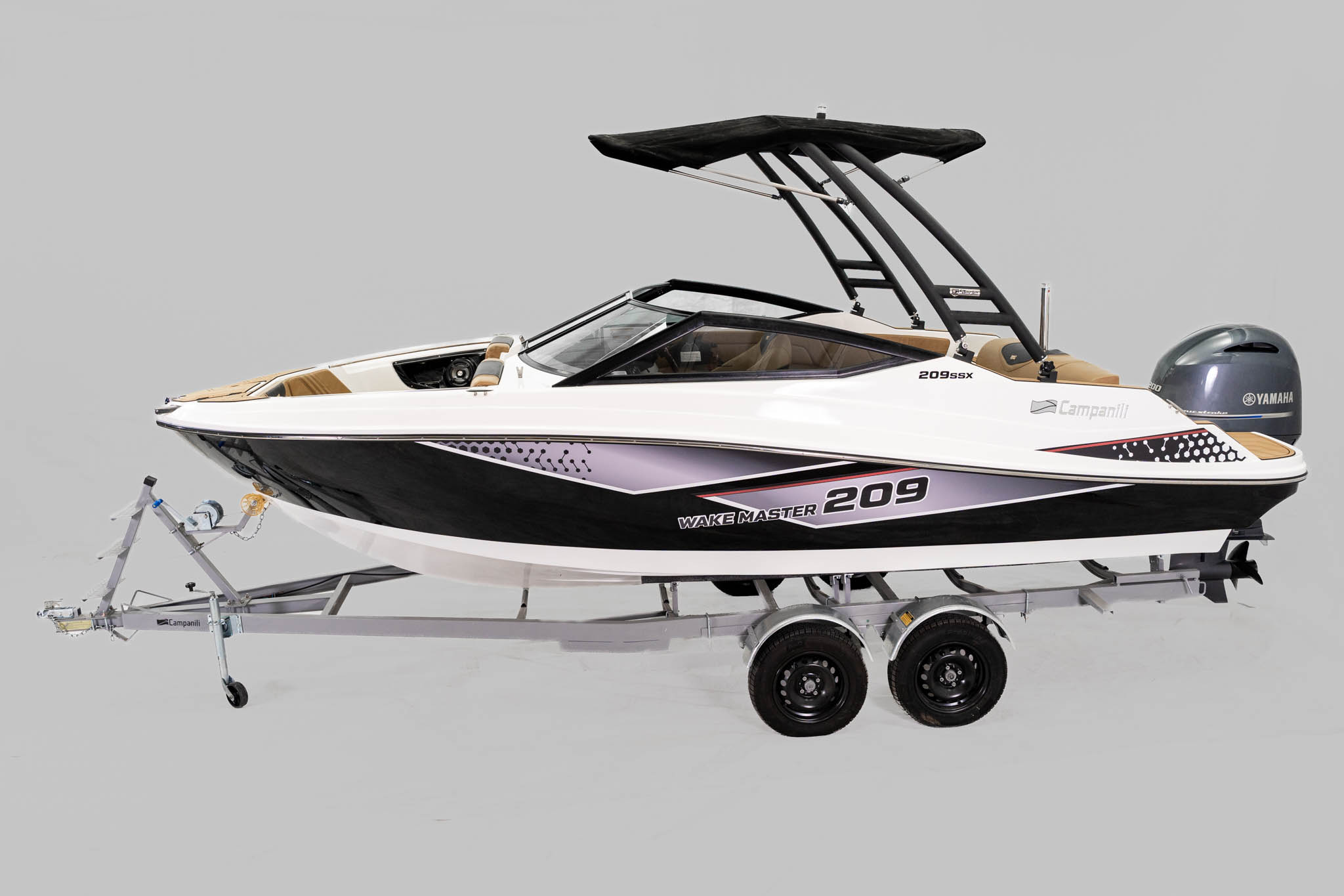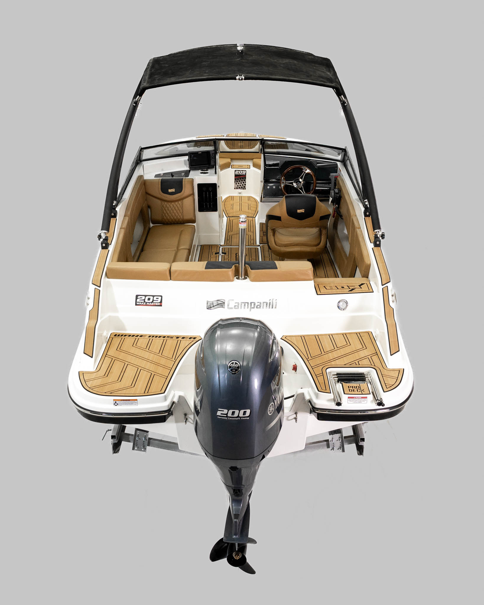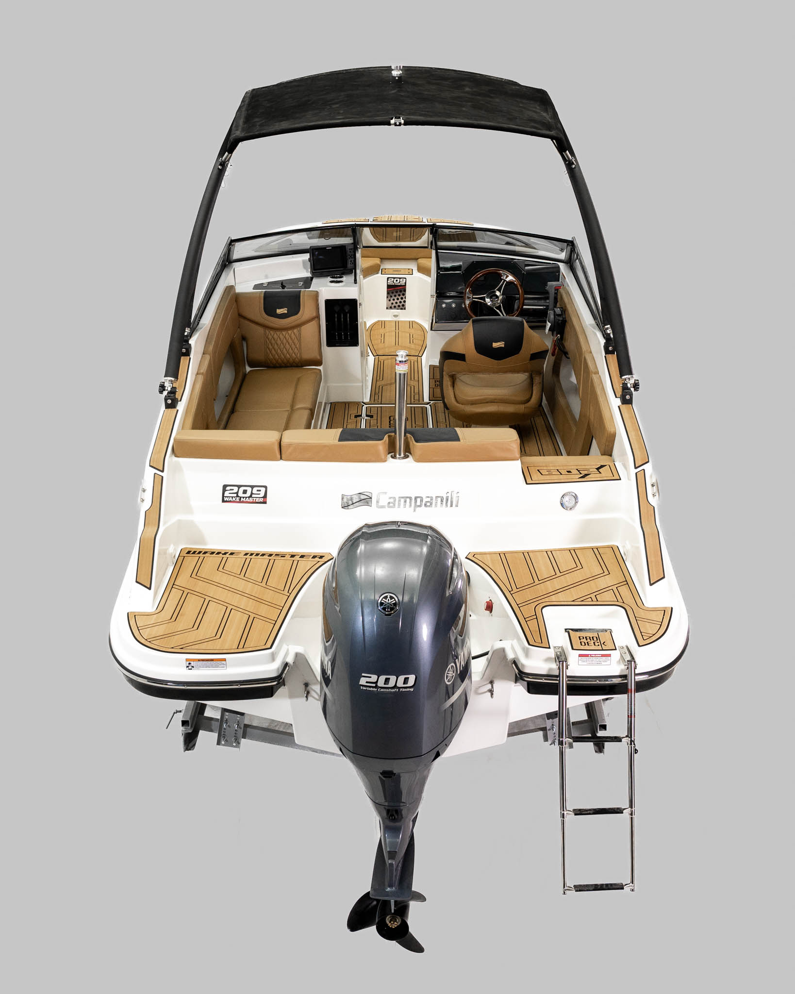 La Campanili 209 SSX reúne potencia, diseño y lujo en partes iguales. Su torre de wake de aluminio, el piso antideslizante de textura suave y la escalera telescópica aportan una experiencia de uso cómoda, segura y elegante.