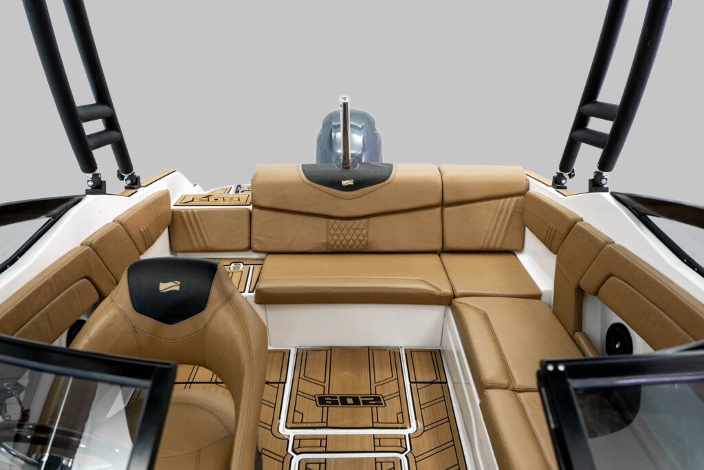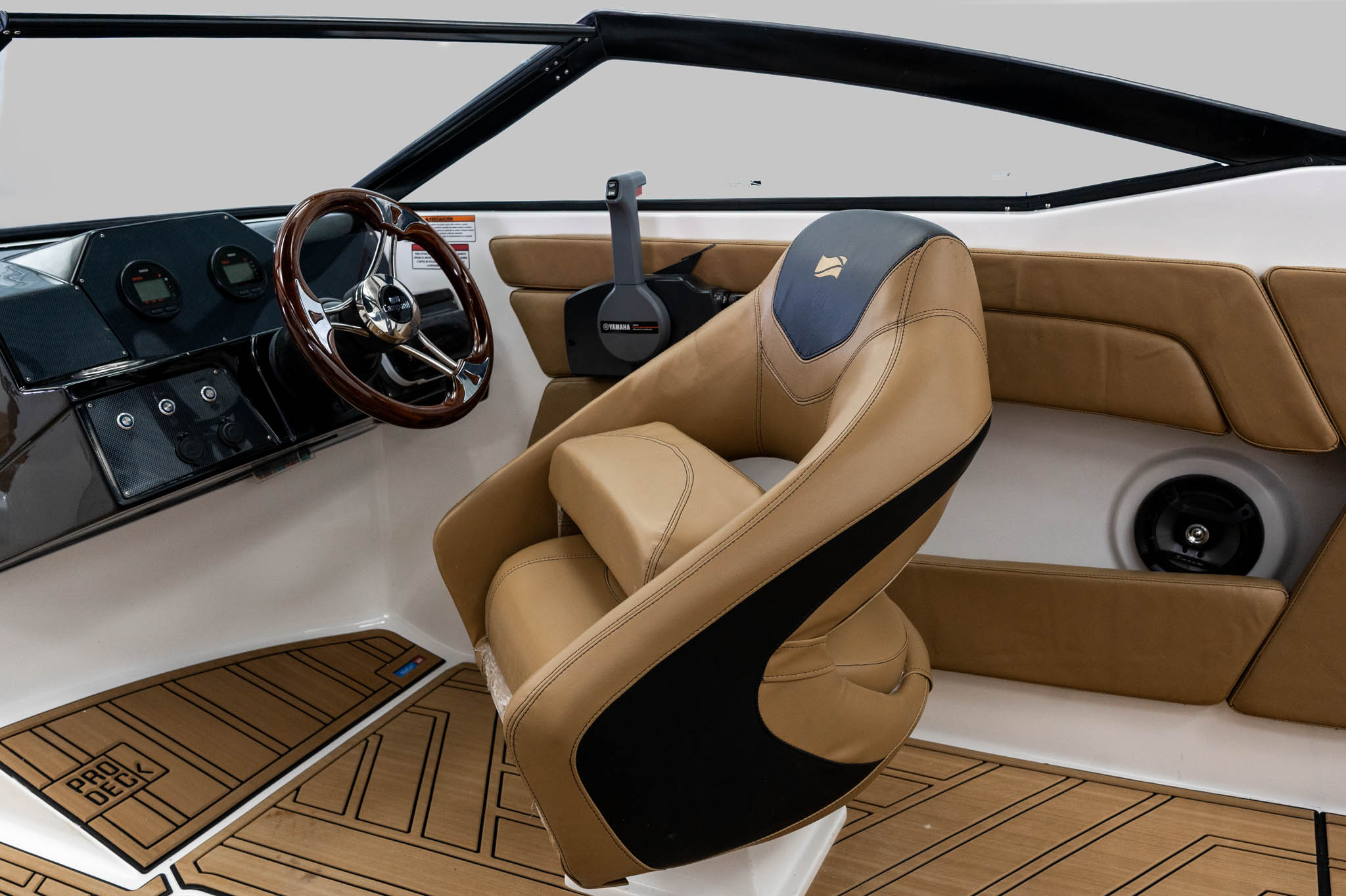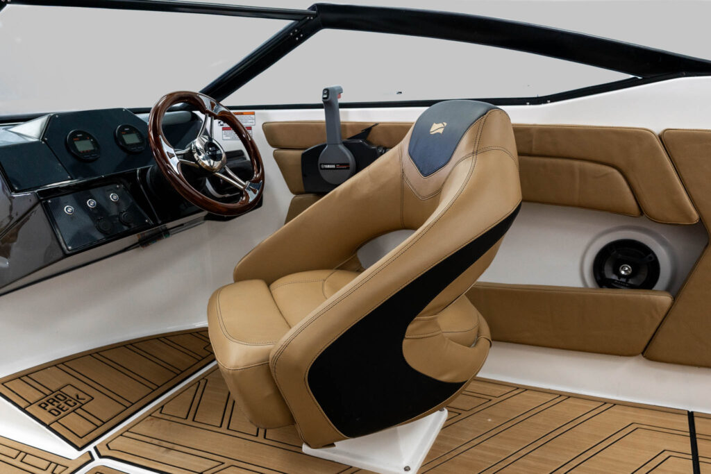El casco en “V” profunda con geometría escalonada garantiza navegación precisa y respuesta inmediata, mientras que el interior —amplio, ergonómico y con tapicería premium— refuerza su carácter exclusivo.