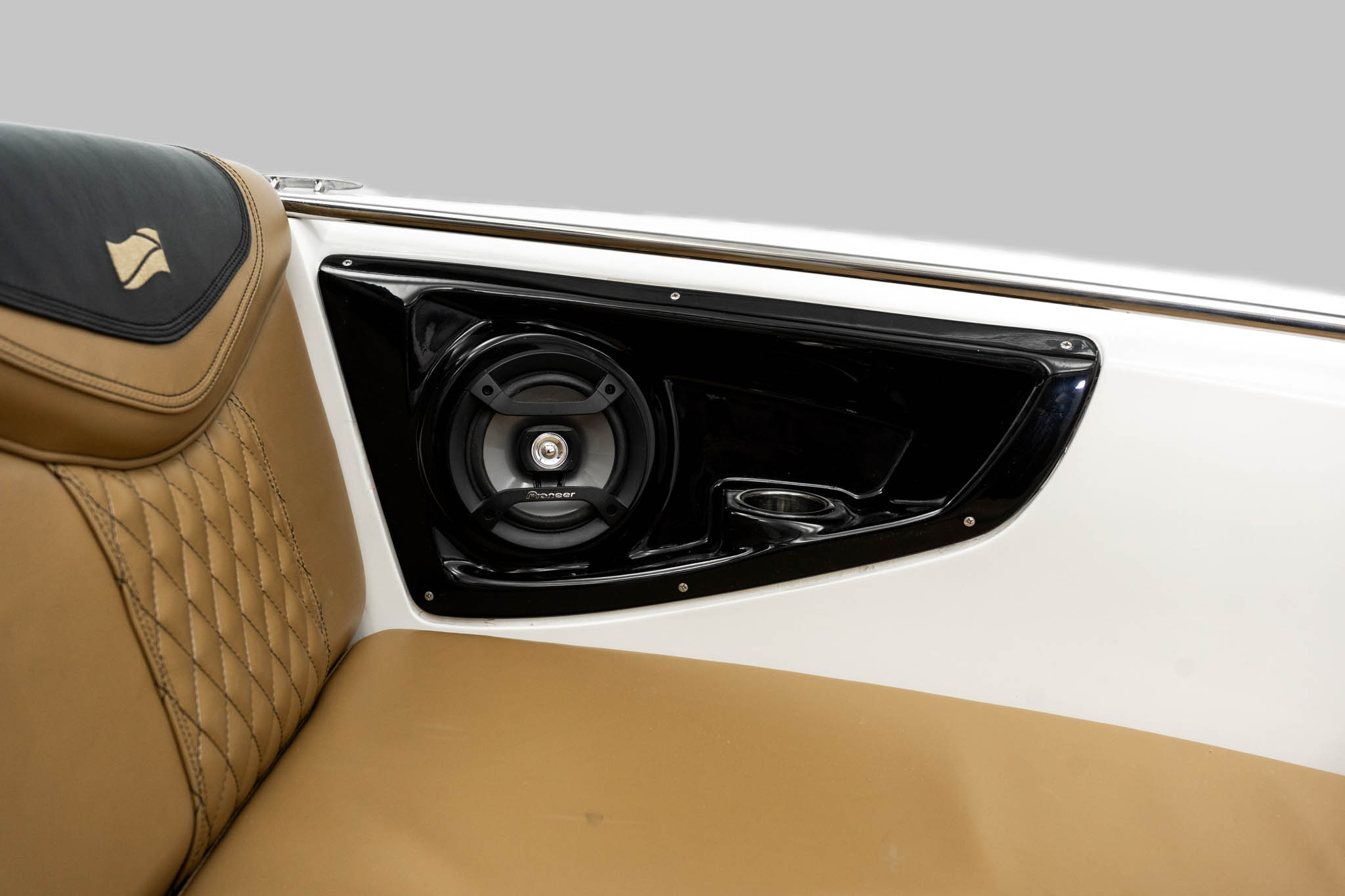 - Sistema de audio profesional con potencia, subwoofer y parlantes marinos.