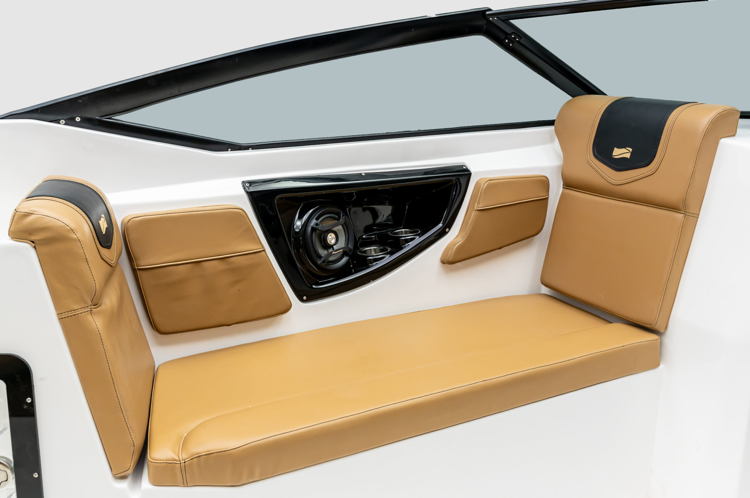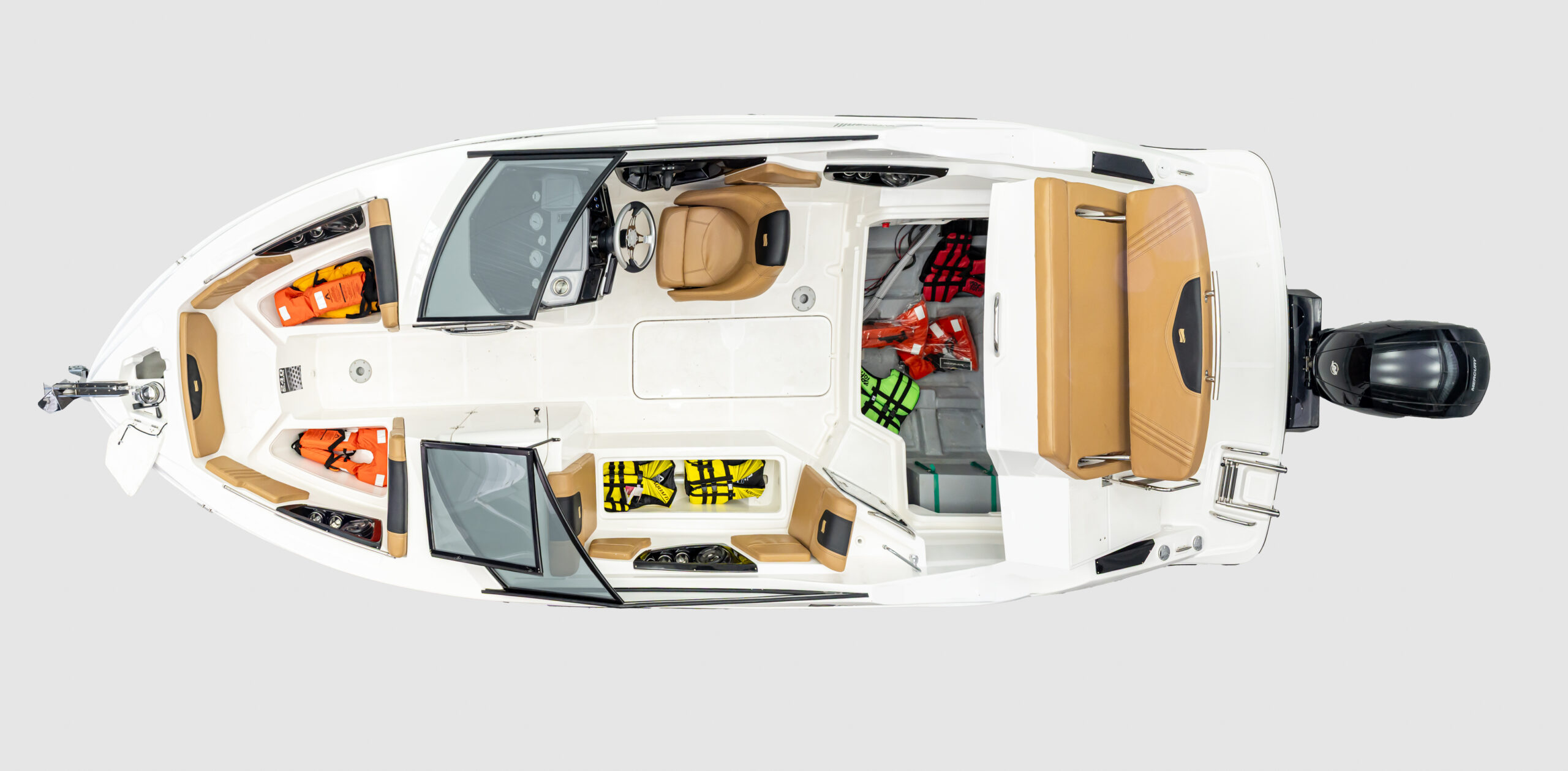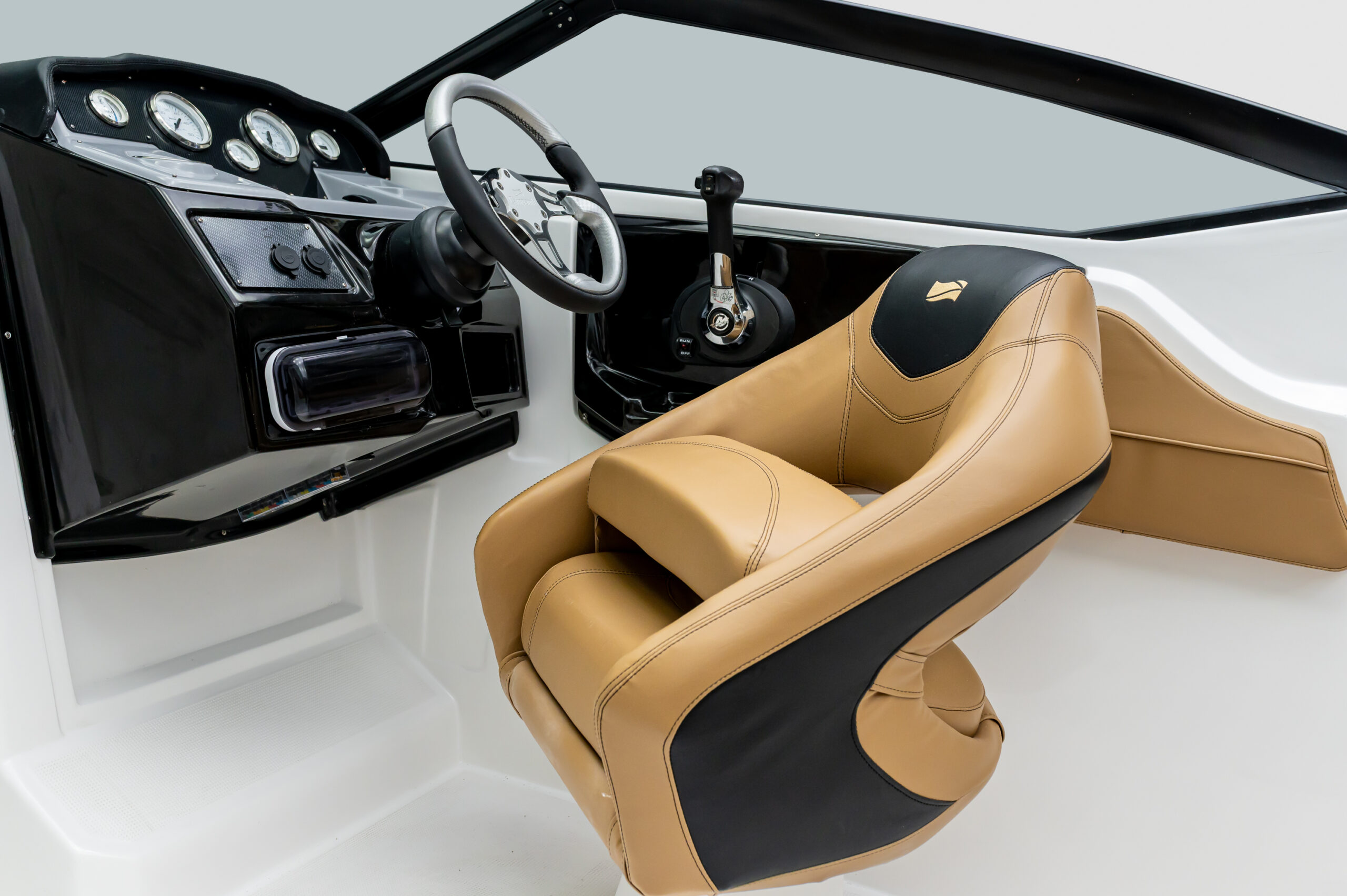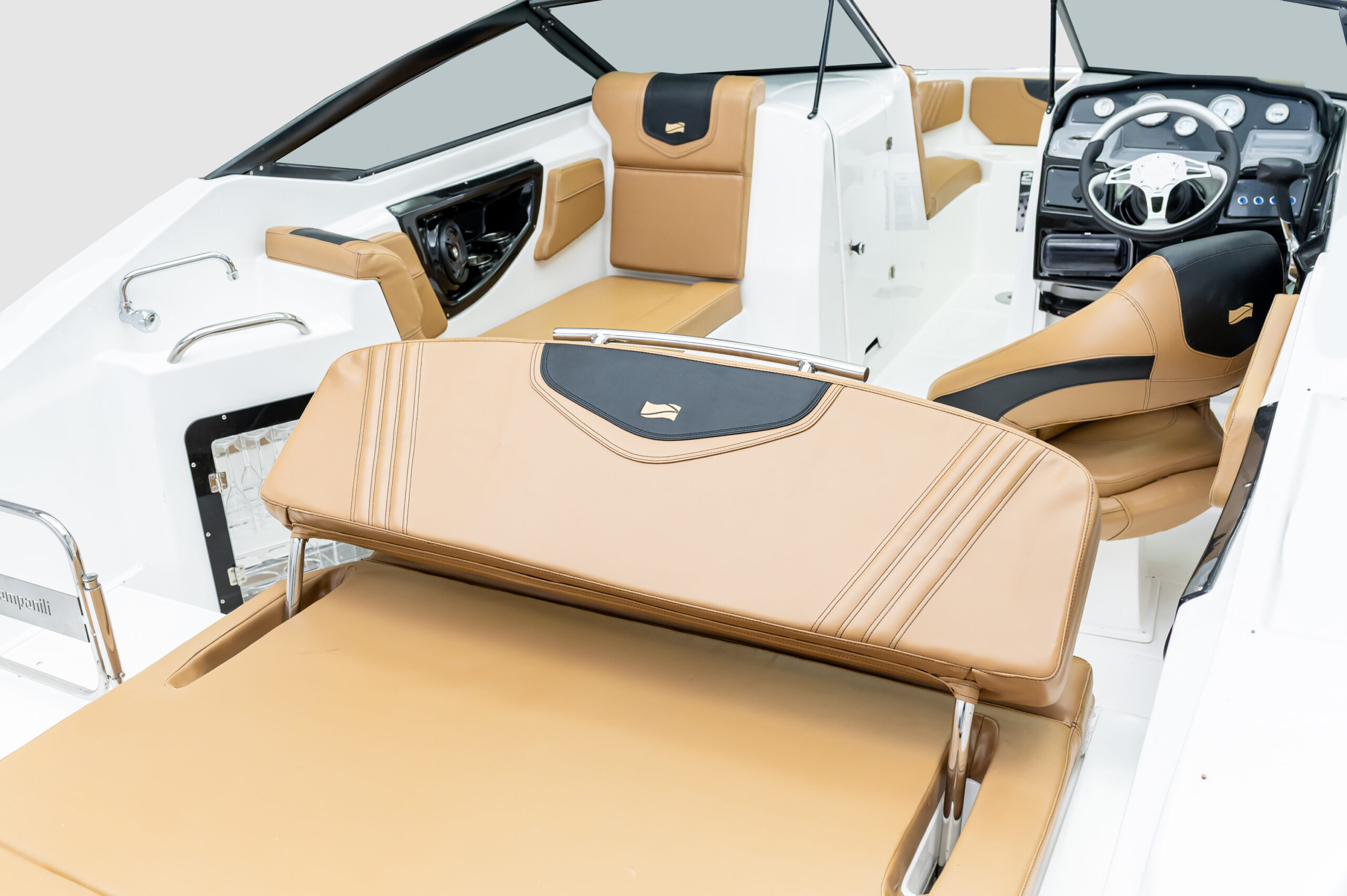 Su casco escalonado asegura estabilidad y respuesta inmediata, mientras que el amplio solárium de popa, el baño compartimentado y el sistema de agua con duchador integran confort de yate en formato deportivo.
