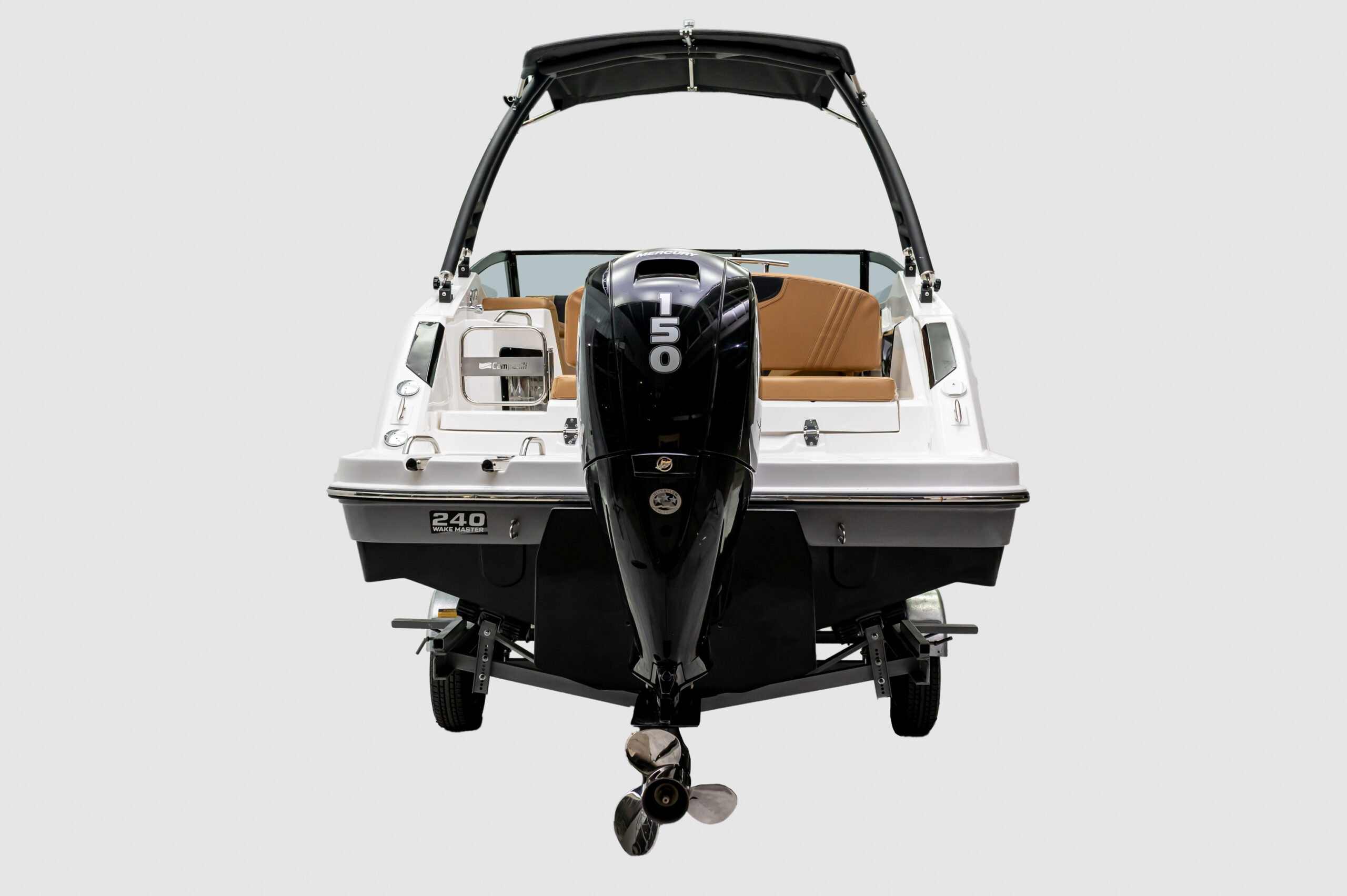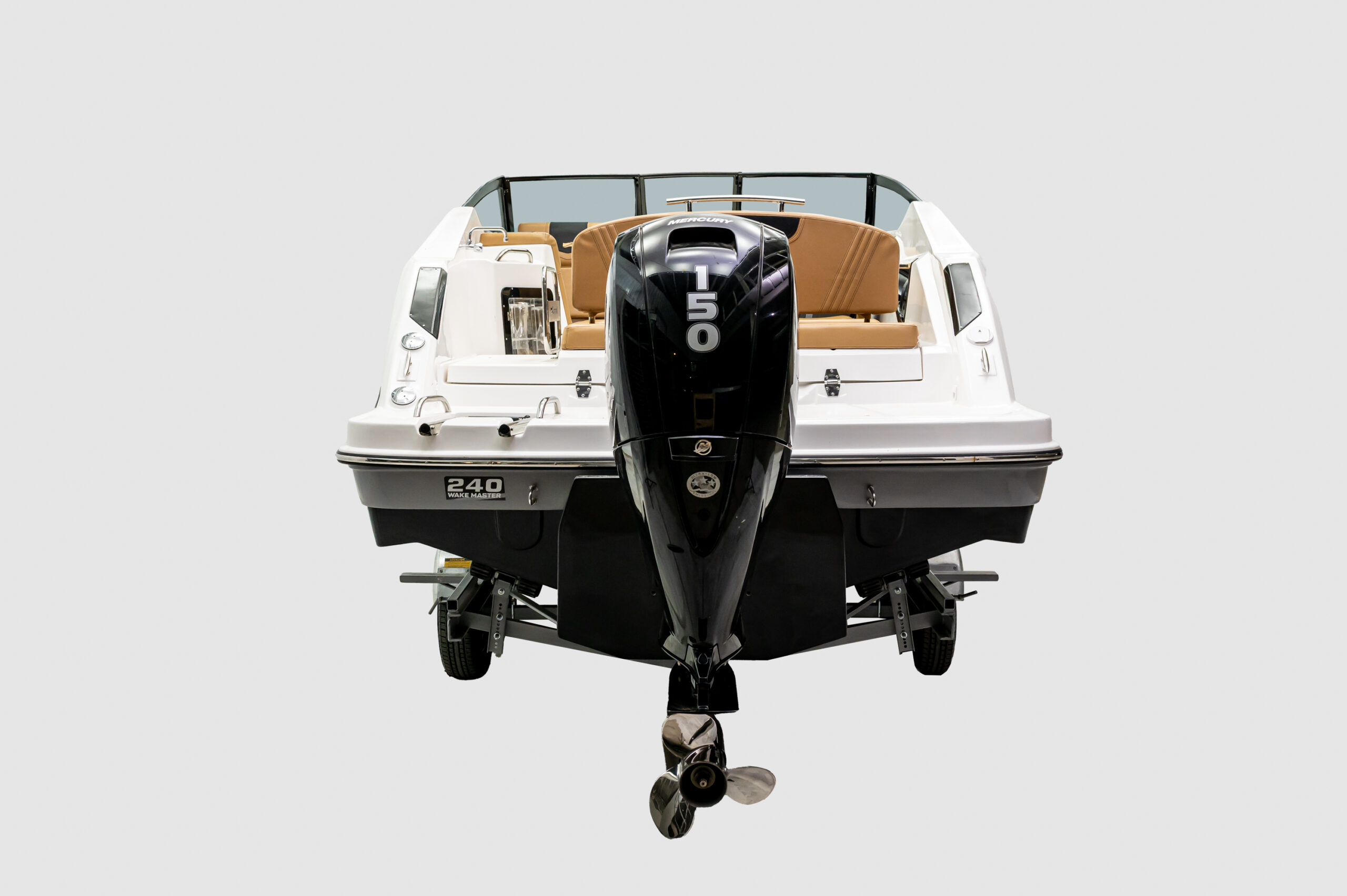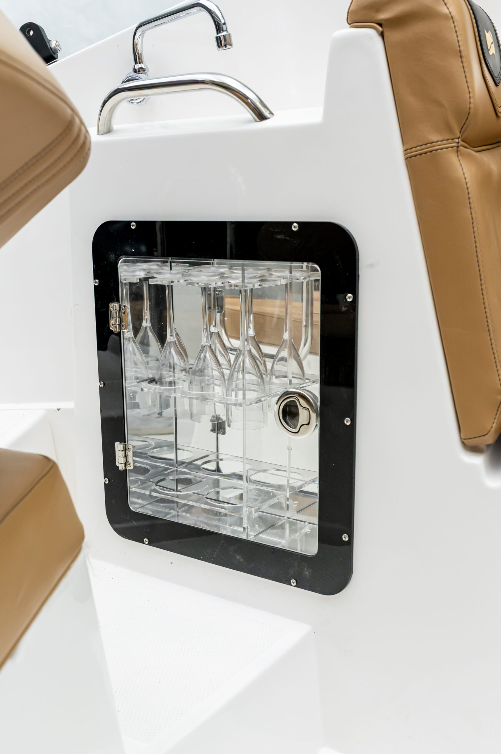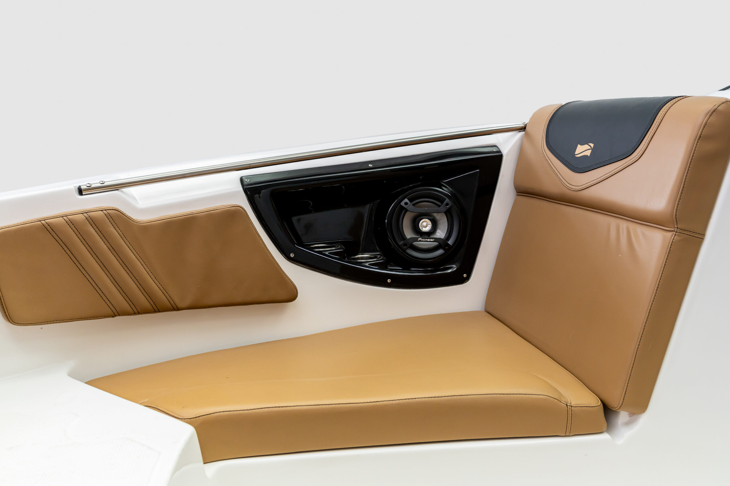 Su casco escalonado asegura estabilidad y respuesta inmediata, mientras que el amplio solárium de popa, el baño compartimentado y el sistema de agua con duchador integran confort de yate en formato deportivo.